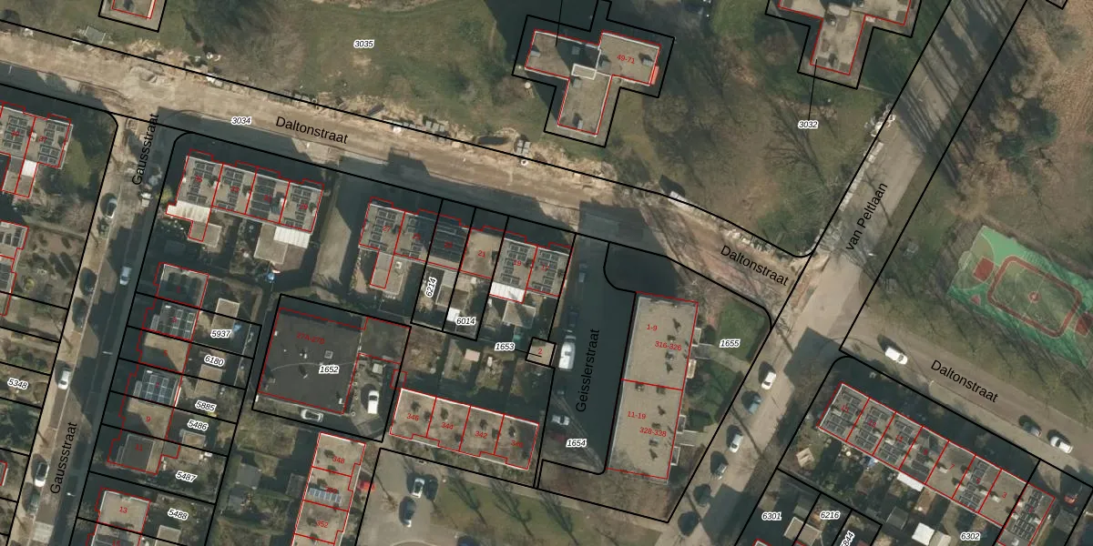 Het perceel waarop Daltonstraat 17 staat heeft een oppervlakte van 7678 m². Dit is een zeer groot perceel. De perceeloppervlakte wordt geregistreerd door het Kadaster. Gedetailleerde informatie over de maten van dit perceel kunt u vinden in het rapport Kadastrale kaart met maatvoering van Daltonstraat 17.