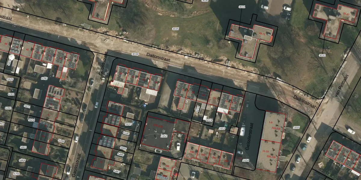 Het perceel waarop Daltonstraat 27 staat heeft een oppervlakte van 7678 m². Dit is een zeer groot perceel. De perceeloppervlakte wordt geregistreerd door het Kadaster. Gedetailleerde informatie over de maten van dit perceel kunt u vinden in het rapport Kadastrale kaart met maatvoering van Daltonstraat 27.