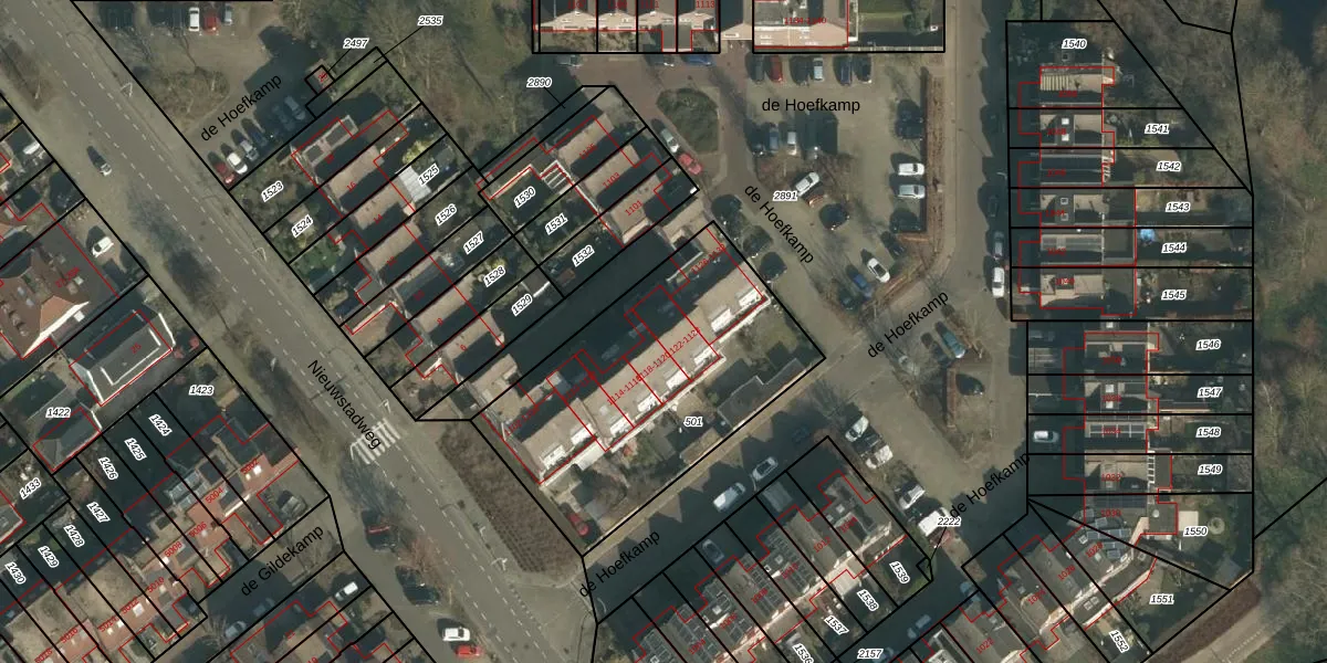 de Hoefkamp 1124 is gelegen op kadastraal perceel NBH00K501. Deze kadastrale aanduiding is uniek en wordt gebruikt door het Kadaster om eigendomsrechten en andere zakelijke rechten vast te leggen. Het perceel maakt onderdeel uit van de kadastrale gemeente Neerbosch.