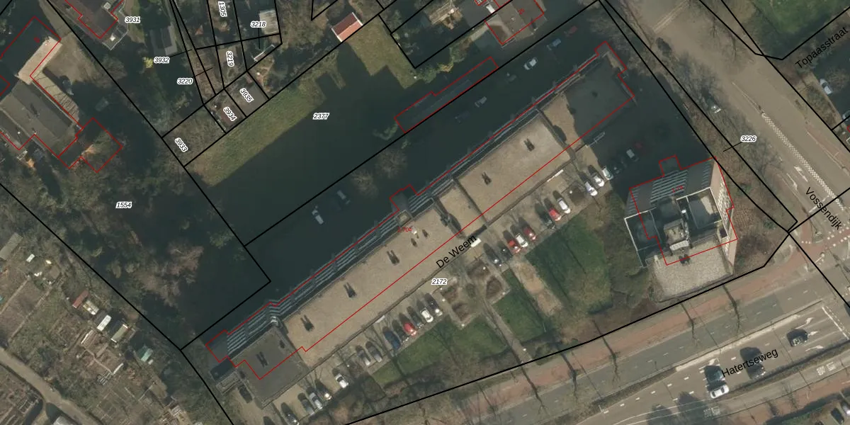 Het perceel waarop De Weem 326 staat heeft een oppervlakte van 7445 m². Dit is een zeer groot perceel. De perceeloppervlakte wordt geregistreerd door het Kadaster. Gedetailleerde informatie over de maten van dit perceel kunt u vinden in het rapport Kadastrale kaart met maatvoering van De Weem 326.