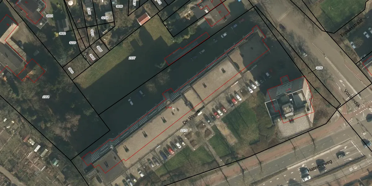 Het perceel waarop De Weem 416 staat heeft een oppervlakte van 7445 m². Dit is een zeer groot perceel. De perceeloppervlakte wordt geregistreerd door het Kadaster. Gedetailleerde informatie over de maten van dit perceel kunt u vinden in het rapport Kadastrale kaart met maatvoering van De Weem 416.