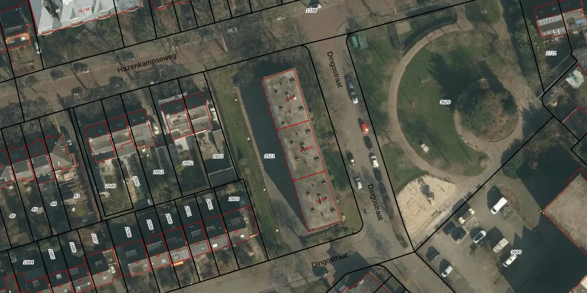 Het perceel waarop Dingostraat 20 staat heeft een oppervlakte van 2371 m². Dit is een zeer groot perceel. De perceeloppervlakte wordt geregistreerd door het Kadaster. Gedetailleerde informatie over de maten van dit perceel kunt u vinden in het rapport Kadastrale kaart met maatvoering van Dingostraat 20.