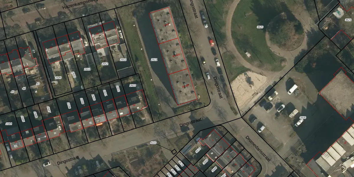 Het perceel waarop Dingostraat 48-A staat heeft een oppervlakte van 2371 m². Dit is een zeer groot perceel. De perceeloppervlakte wordt geregistreerd door het Kadaster. Gedetailleerde informatie over de maten van dit perceel kunt u vinden in het rapport Kadastrale kaart met maatvoering van Dingostraat 48-A.