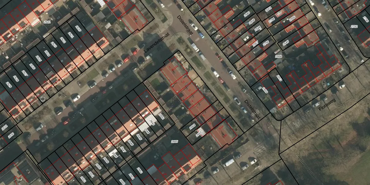 Distelstraat 11 is gelegen op kadastraal perceel NBH00I2665. Deze kadastrale aanduiding is uniek en wordt gebruikt door het Kadaster om eigendomsrechten en andere zakelijke rechten vast te leggen. Het perceel maakt onderdeel uit van de kadastrale gemeente Neerbosch.