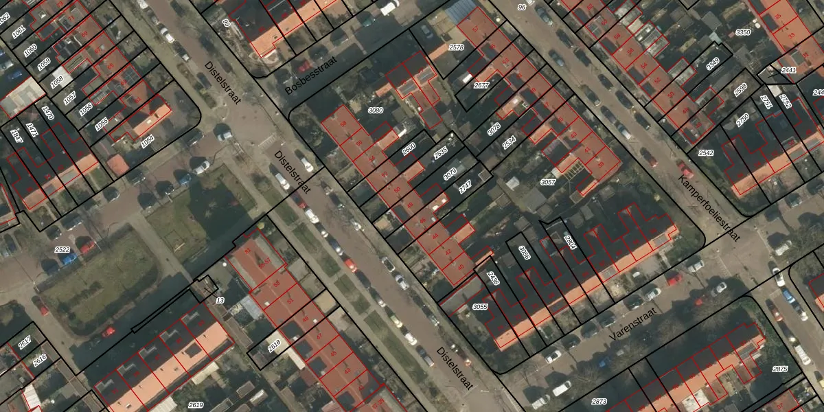 Het perceel waarop Distelstraat 48 staat heeft een oppervlakte van 150 m². Dit is een middelgroot perceel. De perceeloppervlakte wordt geregistreerd door het Kadaster. Gedetailleerde informatie over de maten van dit perceel kunt u vinden in het rapport Kadastrale kaart met maatvoering van Distelstraat 48.