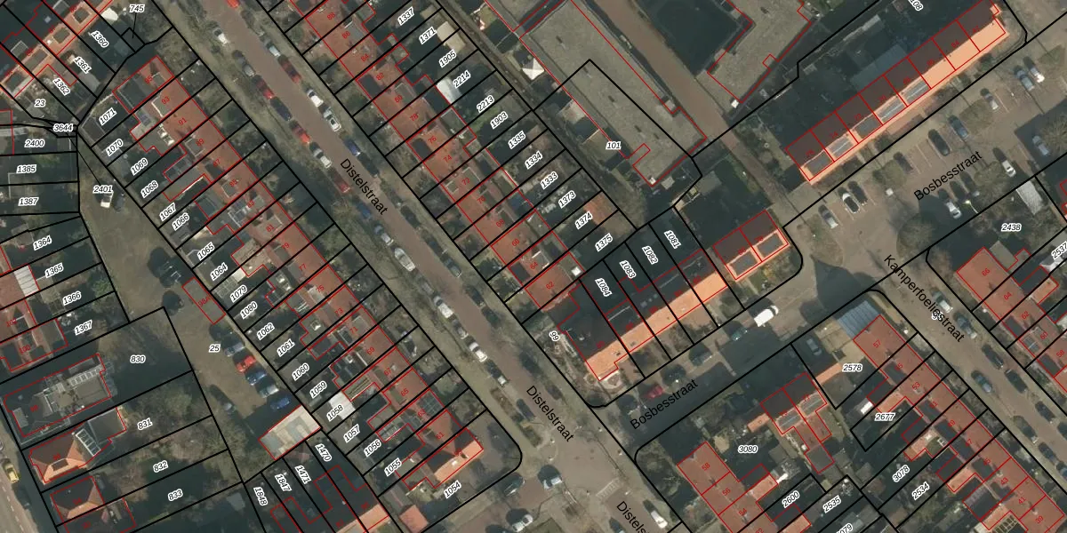 Distelstraat 64 is gelegen op kadastraal perceel NBH00I1374. Deze kadastrale aanduiding is uniek en wordt gebruikt door het Kadaster om eigendomsrechten en andere zakelijke rechten vast te leggen. Het perceel maakt onderdeel uit van de kadastrale gemeente Neerbosch.