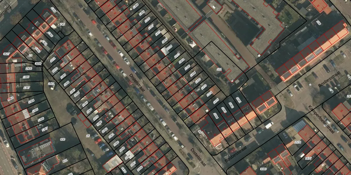 Distelstraat 70 is gelegen op kadastraal perceel NBH00I1334. Deze kadastrale aanduiding is uniek en wordt gebruikt door het Kadaster om eigendomsrechten en andere zakelijke rechten vast te leggen. Het perceel maakt onderdeel uit van de kadastrale gemeente Neerbosch.
