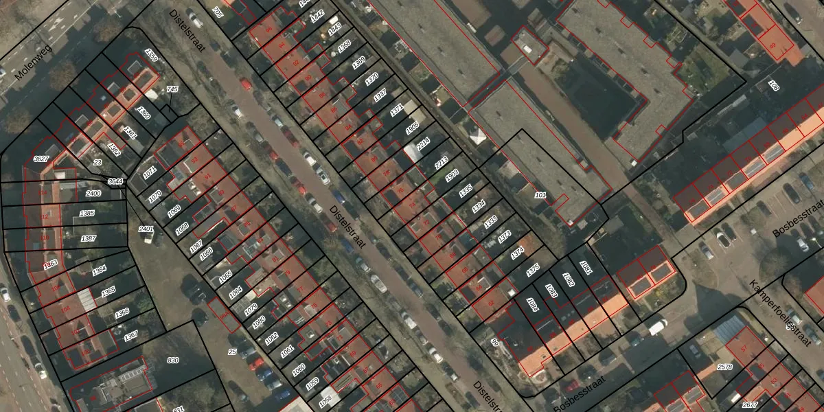Het perceel waarop Distelstraat 74 staat heeft een oppervlakte van 136 m². Dit is een middelgroot perceel. De perceeloppervlakte wordt geregistreerd door het Kadaster. Gedetailleerde informatie over de maten van dit perceel kunt u vinden in het rapport Kadastrale kaart met maatvoering van Distelstraat 74.