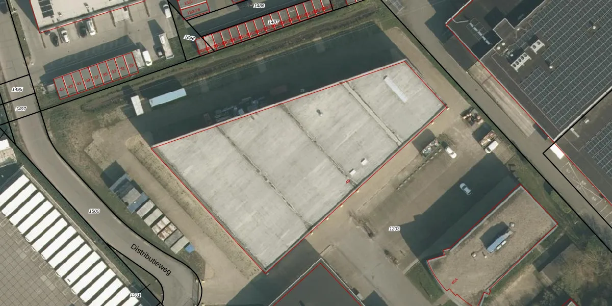 Het perceel waarop Distributieweg 49 staat heeft een oppervlakte van 2,3 ha. Dit is een zeer groot perceel. De perceeloppervlakte wordt geregistreerd door het Kadaster. Gedetailleerde informatie over de maten van dit perceel kunt u vinden in het rapport Kadastrale kaart met maatvoering van Distributieweg 49.