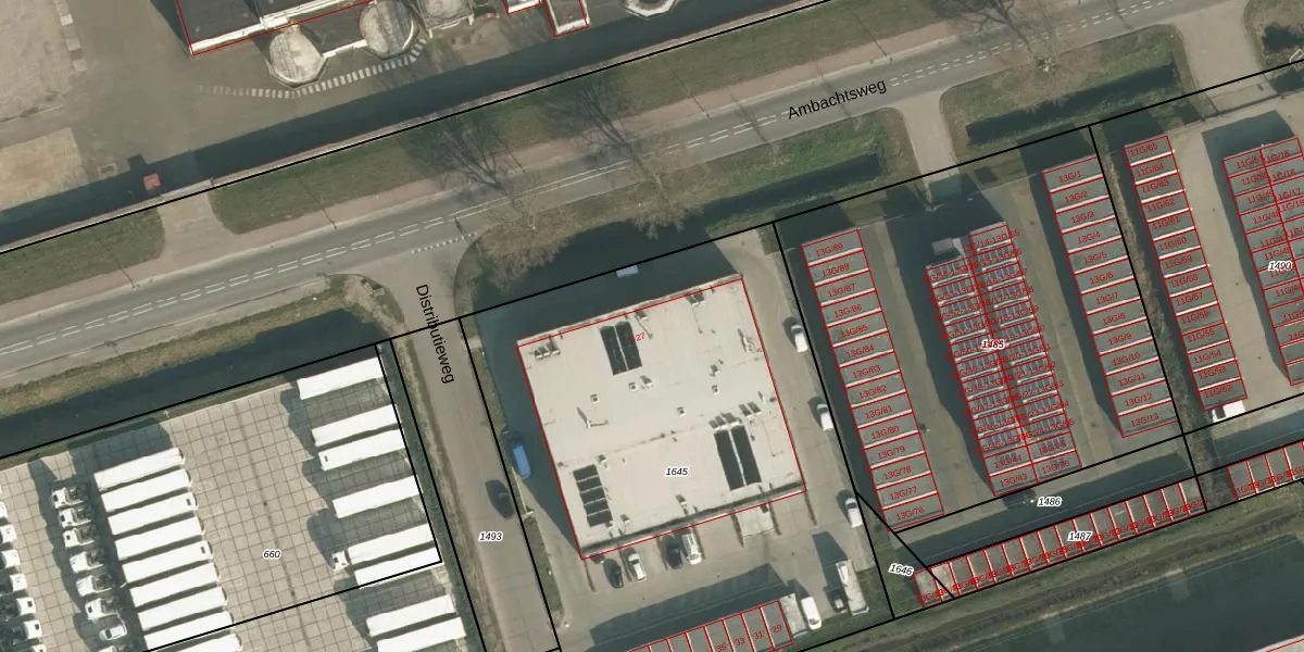 Het perceel waarop Distributieweg 9 staat heeft een oppervlakte van 3245 m². Dit is een zeer groot perceel. De perceeloppervlakte wordt geregistreerd door het Kadaster. Gedetailleerde informatie over de maten van dit perceel kunt u vinden in het rapport Kadastrale kaart met maatvoering van Distributieweg 9.