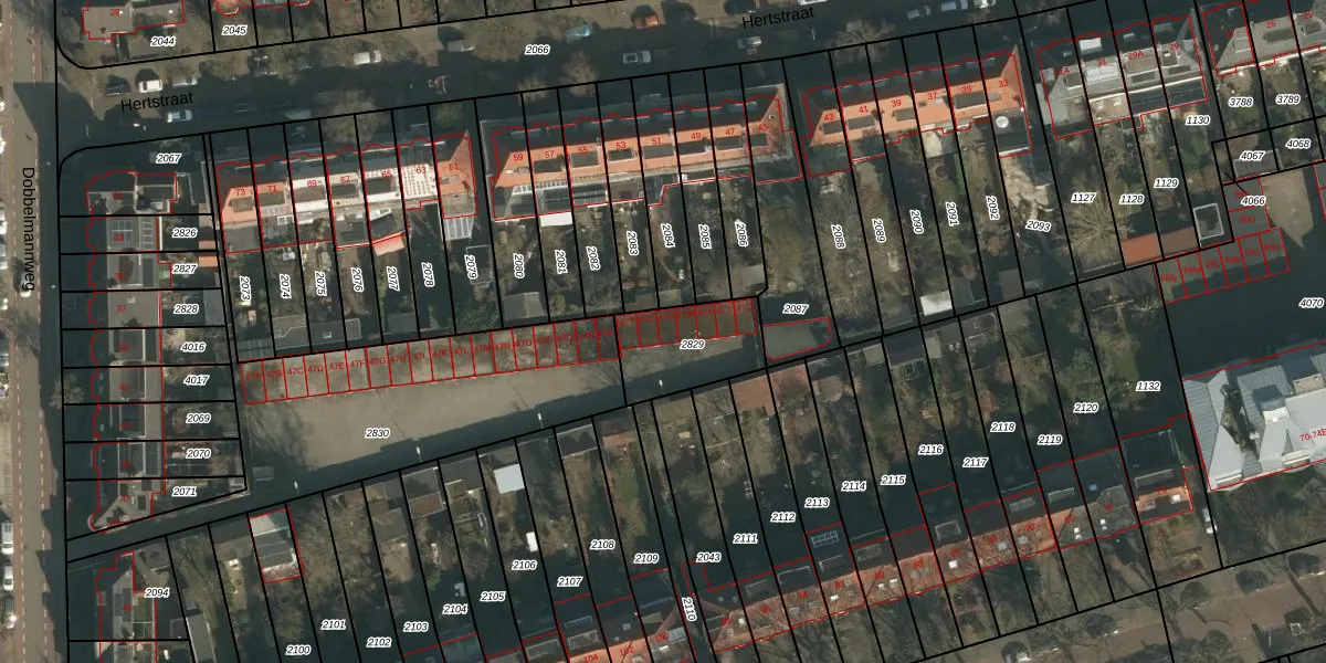 Dobbelmannweg 47-V is gelegen op kadastraal perceel HTT02M2829. Deze kadastrale aanduiding is uniek en wordt gebruikt door het Kadaster om eigendomsrechten en andere zakelijke rechten vast te leggen. Het perceel maakt onderdeel uit van de kadastrale gemeente Hatert.