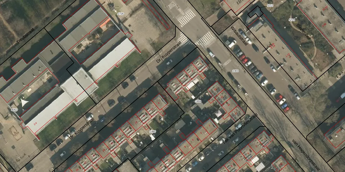 Dr. Kuyperstraat 7 is gelegen op kadastraal perceel HTT02D1959. Deze kadastrale aanduiding is uniek en wordt gebruikt door het Kadaster om eigendomsrechten en andere zakelijke rechten vast te leggen. Het perceel maakt onderdeel uit van de kadastrale gemeente Hatert.