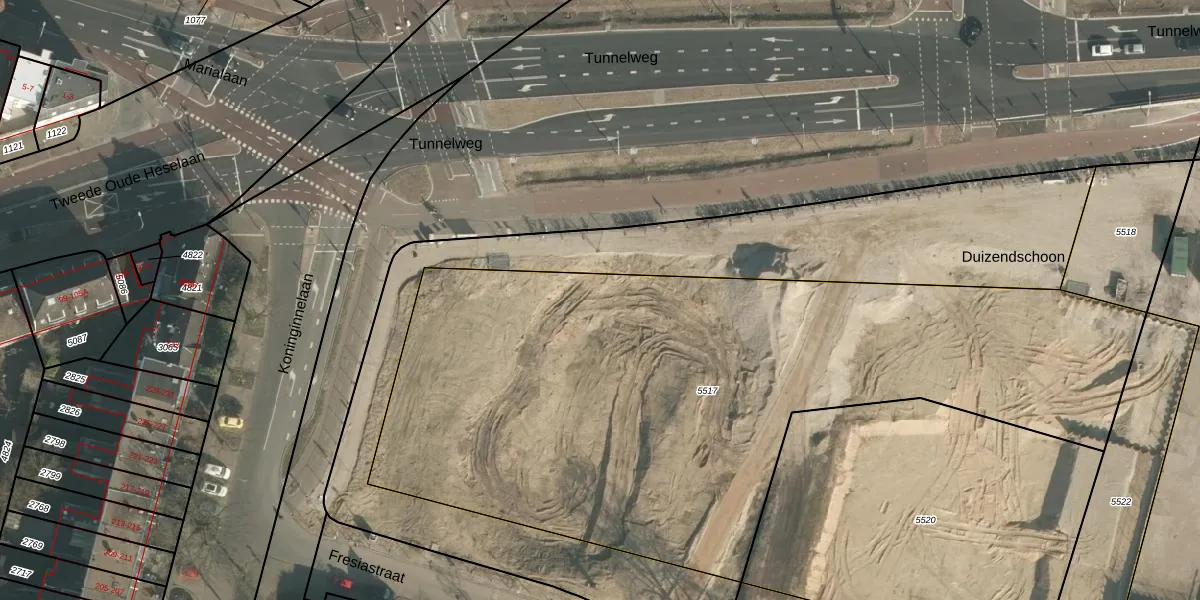 Het perceel waarop Duizendschoon 515 staat heeft een oppervlakte van 3987 m². Dit is een zeer groot perceel. De perceeloppervlakte wordt geregistreerd door het Kadaster. Gedetailleerde informatie over de maten van dit perceel kunt u vinden in het rapport Kadastrale kaart met maatvoering van Duizendschoon 515.