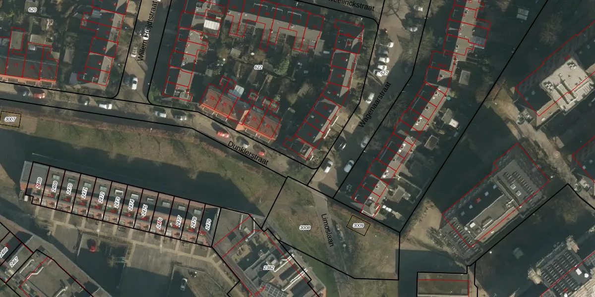 Het perceel waarop Dunklerstraat 33 staat heeft een oppervlakte van 3270 m². Dit is een zeer groot perceel. De perceeloppervlakte wordt geregistreerd door het Kadaster. Gedetailleerde informatie over de maten van dit perceel kunt u vinden in het rapport Kadastrale kaart met maatvoering van Dunklerstraat 33.