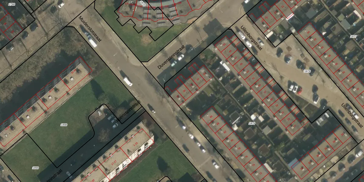 Het perceel waarop Duvensteinstraat 35 staat heeft een oppervlakte van 4960 m². Dit is een zeer groot perceel. De perceeloppervlakte wordt geregistreerd door het Kadaster. Gedetailleerde informatie over de maten van dit perceel kunt u vinden in het rapport Kadastrale kaart met maatvoering van Duvensteinstraat 35.