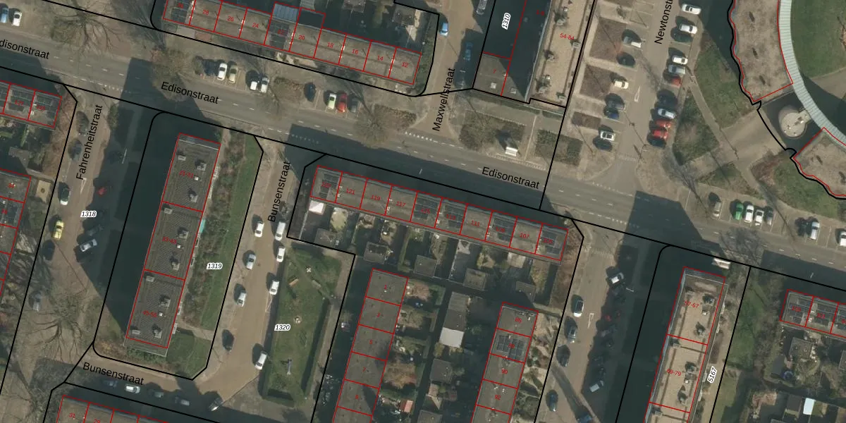 Het perceel waarop Edisonstraat 115 staat heeft een oppervlakte van 9220 m². Dit is een zeer groot perceel. De perceeloppervlakte wordt geregistreerd door het Kadaster. Gedetailleerde informatie over de maten van dit perceel kunt u vinden in het rapport Kadastrale kaart met maatvoering van Edisonstraat 115.