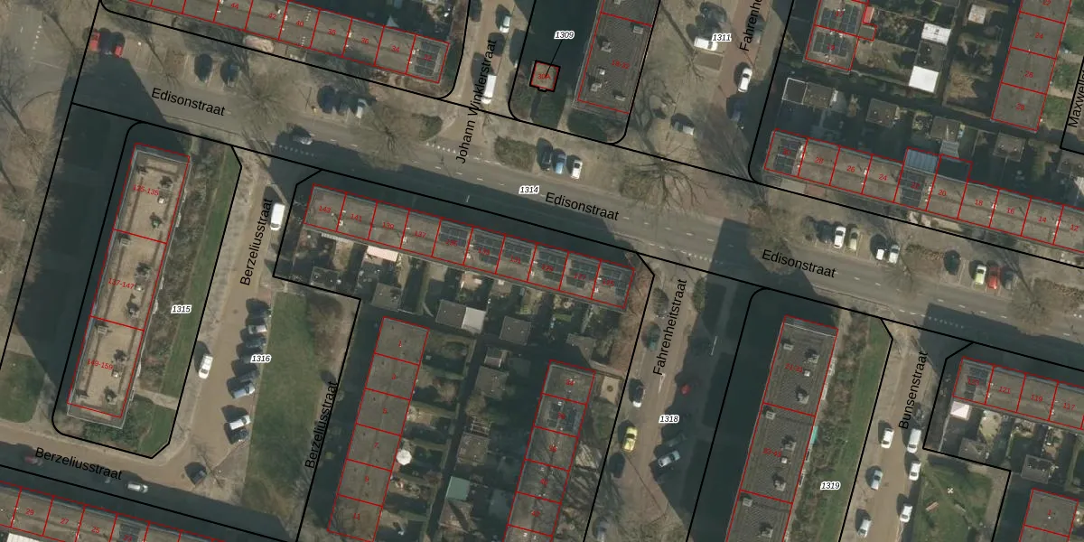 Het perceel waarop Edisonstraat 129 staat heeft een oppervlakte van 9215 m². Dit is een zeer groot perceel. De perceeloppervlakte wordt geregistreerd door het Kadaster. Gedetailleerde informatie over de maten van dit perceel kunt u vinden in het rapport Kadastrale kaart met maatvoering van Edisonstraat 129.