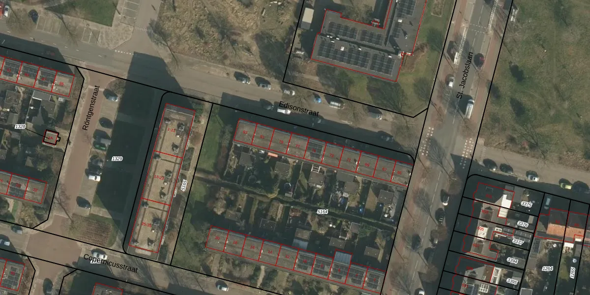 Het perceel waarop Edisonstraat 77 staat heeft een oppervlakte van 4050 m². Dit is een zeer groot perceel. De perceeloppervlakte wordt geregistreerd door het Kadaster. Gedetailleerde informatie over de maten van dit perceel kunt u vinden in het rapport Kadastrale kaart met maatvoering van Edisonstraat 77.