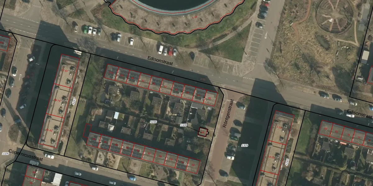 Het perceel waarop Edisonstraat 89 staat heeft een oppervlakte van 4210 m². Dit is een zeer groot perceel. De perceeloppervlakte wordt geregistreerd door het Kadaster. Gedetailleerde informatie over de maten van dit perceel kunt u vinden in het rapport Kadastrale kaart met maatvoering van Edisonstraat 89.