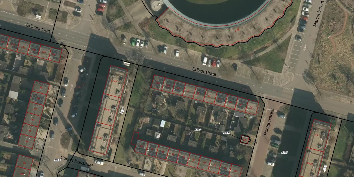 Het perceel waarop Edisonstraat 99 staat heeft een oppervlakte van 4210 m². Dit is een zeer groot perceel. De perceeloppervlakte wordt geregistreerd door het Kadaster. Gedetailleerde informatie over de maten van dit perceel kunt u vinden in het rapport Kadastrale kaart met maatvoering van Edisonstraat 99.