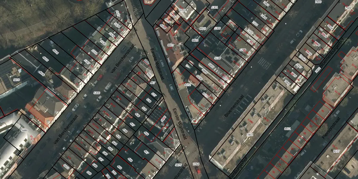 Het perceel waarop Eerste Walstraat 62-A staat heeft een oppervlakte van 371 m². Dit is een groot perceel. De perceeloppervlakte wordt geregistreerd door het Kadaster. Gedetailleerde informatie over de maten van dit perceel kunt u vinden in het rapport Kadastrale kaart met maatvoering van Eerste Walstraat 62-A.