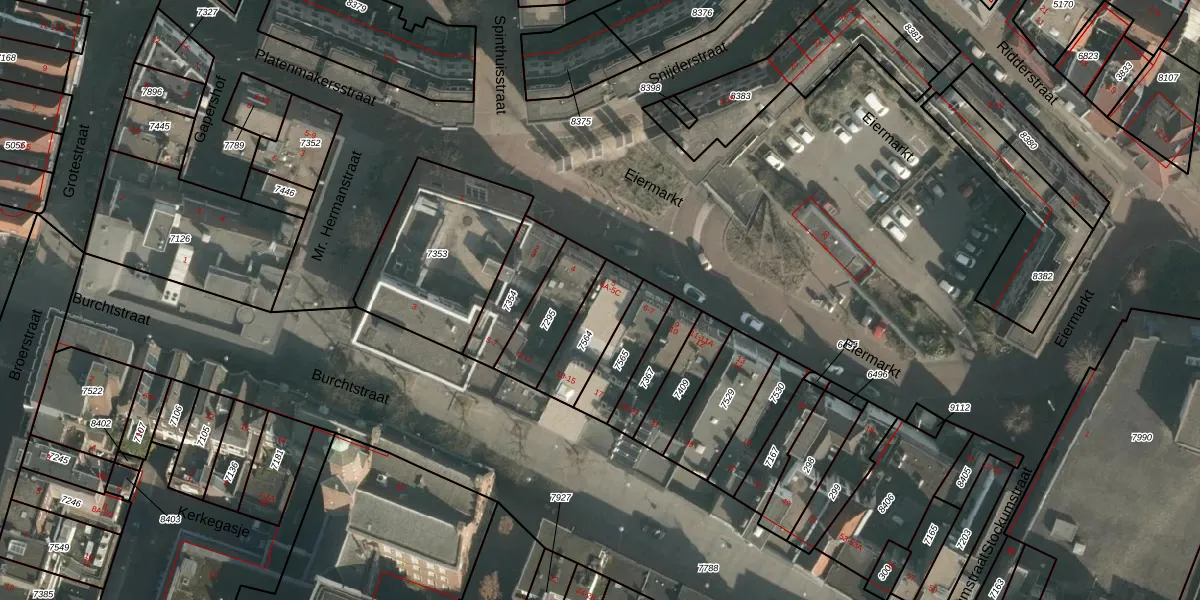 Eiermarkt 5-B is gelegen op kadastraal perceel NMG00C7564. Deze kadastrale aanduiding is uniek en wordt gebruikt door het Kadaster om eigendomsrechten en andere zakelijke rechten vast te leggen. Het perceel maakt onderdeel uit van de kadastrale gemeente Nijmegen.