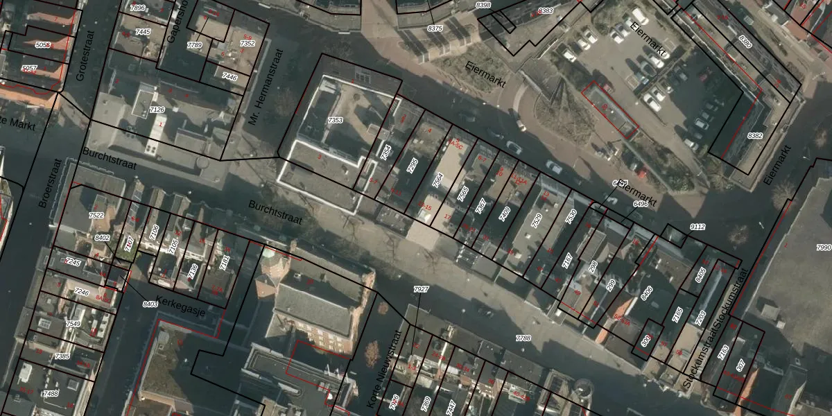 Eiermarkt 5 is gelegen op kadastraal perceel NMG00C7564. Deze kadastrale aanduiding is uniek en wordt gebruikt door het Kadaster om eigendomsrechten en andere zakelijke rechten vast te leggen. Het perceel maakt onderdeel uit van de kadastrale gemeente Nijmegen.