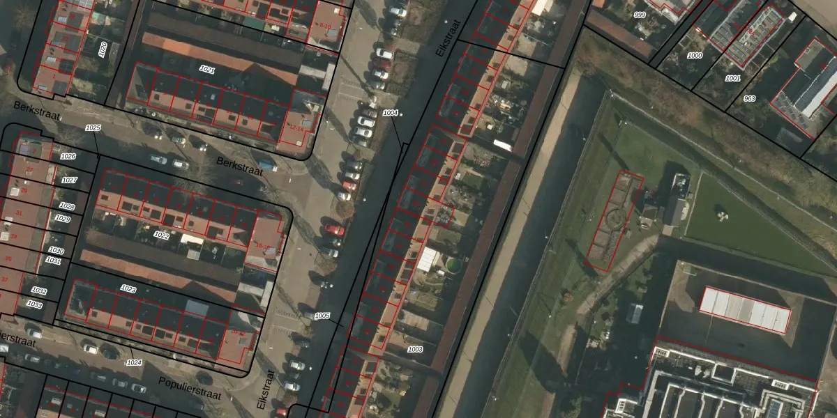 Het perceel waarop Eikstraat 23 staat heeft een oppervlakte van 4982 m². Dit is een zeer groot perceel. De perceeloppervlakte wordt geregistreerd door het Kadaster. Gedetailleerde informatie over de maten van dit perceel kunt u vinden in het rapport Kadastrale kaart met maatvoering van Eikstraat 23.