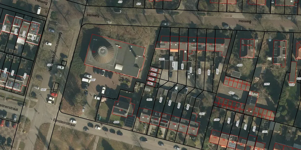 Einsteinstraat 100-C is gelegen op kadastraal perceel HTT02L3449. Deze kadastrale aanduiding is uniek en wordt gebruikt door het Kadaster om eigendomsrechten en andere zakelijke rechten vast te leggen. Het perceel maakt onderdeel uit van de kadastrale gemeente Hatert.