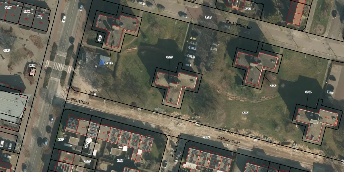 Het perceel waarop Einsteinstraat 109 staat heeft een oppervlakte van 426 m². Dit is een groot perceel. De perceeloppervlakte wordt geregistreerd door het Kadaster. Gedetailleerde informatie over de maten van dit perceel kunt u vinden in het rapport Kadastrale kaart met maatvoering van Einsteinstraat 109.