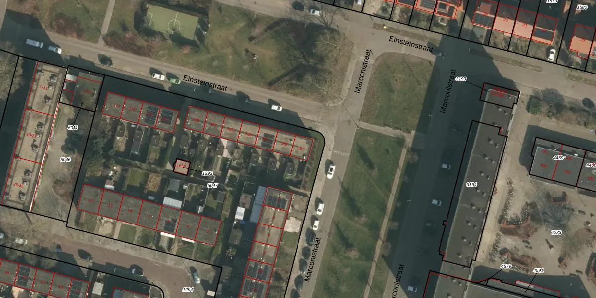 Het perceel waarop Einsteinstraat 157 staat heeft een oppervlakte van 5147 m². Dit is een zeer groot perceel. De perceeloppervlakte wordt geregistreerd door het Kadaster. Gedetailleerde informatie over de maten van dit perceel kunt u vinden in het rapport Kadastrale kaart met maatvoering van Einsteinstraat 157.