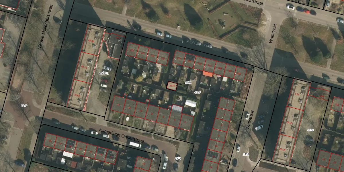Het perceel waarop Einsteinstraat 217-A staat heeft een oppervlakte van 24 m². Dit is een klein perceel. De perceeloppervlakte wordt geregistreerd door het Kadaster. Gedetailleerde informatie over de maten van dit perceel kunt u vinden in het rapport Kadastrale kaart met maatvoering van Einsteinstraat 217-A.