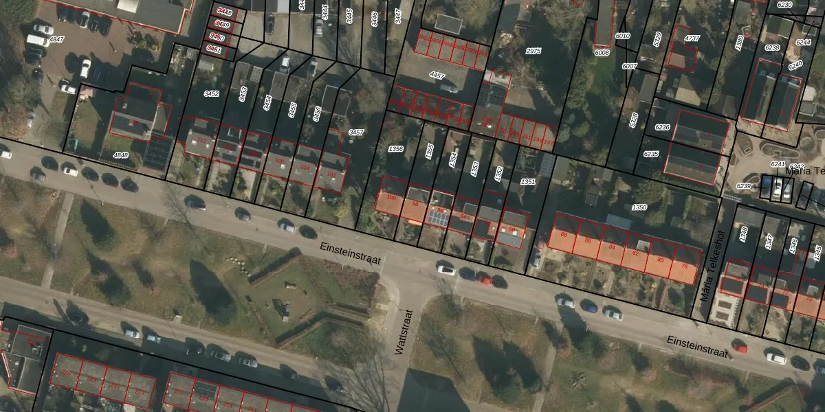 Het perceel waarop Einsteinstraat 98 staat heeft een oppervlakte van 181 m². Dit is een middelgroot perceel. De perceeloppervlakte wordt geregistreerd door het Kadaster. Gedetailleerde informatie over de maten van dit perceel kunt u vinden in het rapport Kadastrale kaart met maatvoering van Einsteinstraat 98.