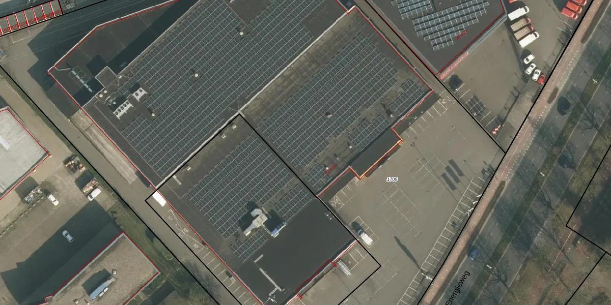 Het perceel waarop Energieweg 42 staat heeft een oppervlakte van 1,1 ha. Dit is een zeer groot perceel. De perceeloppervlakte wordt geregistreerd door het Kadaster. Gedetailleerde informatie over de maten van dit perceel kunt u vinden in het rapport Kadastrale kaart met maatvoering van Energieweg 42.