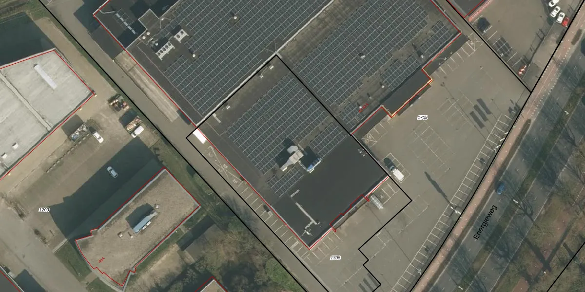 Het perceel waarop Energieweg 42-A staat heeft een oppervlakte van 3095 m². Dit is een zeer groot perceel. De perceeloppervlakte wordt geregistreerd door het Kadaster. Gedetailleerde informatie over de maten van dit perceel kunt u vinden in het rapport Kadastrale kaart met maatvoering van Energieweg 42-A.