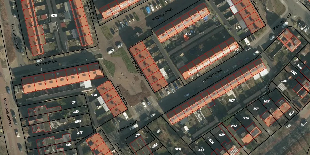 Het perceel waarop Engelsstraat 10 staat heeft een oppervlakte van 3180 m². Dit is een zeer groot perceel. De perceeloppervlakte wordt geregistreerd door het Kadaster. Gedetailleerde informatie over de maten van dit perceel kunt u vinden in het rapport Kadastrale kaart met maatvoering van Engelsstraat 10.