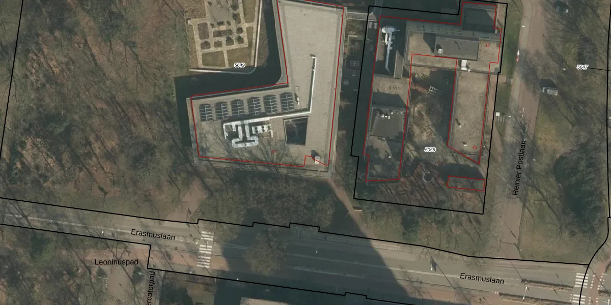 Het perceel waarop Erasmuslaan 17 staat heeft een oppervlakte van 1,8 ha. Dit is een zeer groot perceel. De perceeloppervlakte wordt geregistreerd door het Kadaster. Gedetailleerde informatie over de maten van dit perceel kunt u vinden in het rapport Kadastrale kaart met maatvoering van Erasmuslaan 17.
