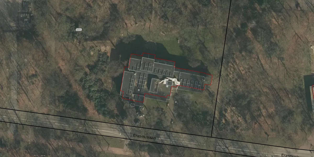 Het perceel waarop Erasmuslaan 9 staat heeft een oppervlakte van 2,3 ha. Dit is een zeer groot perceel. De perceeloppervlakte wordt geregistreerd door het Kadaster. Gedetailleerde informatie over de maten van dit perceel kunt u vinden in het rapport Kadastrale kaart met maatvoering van Erasmuslaan 9.