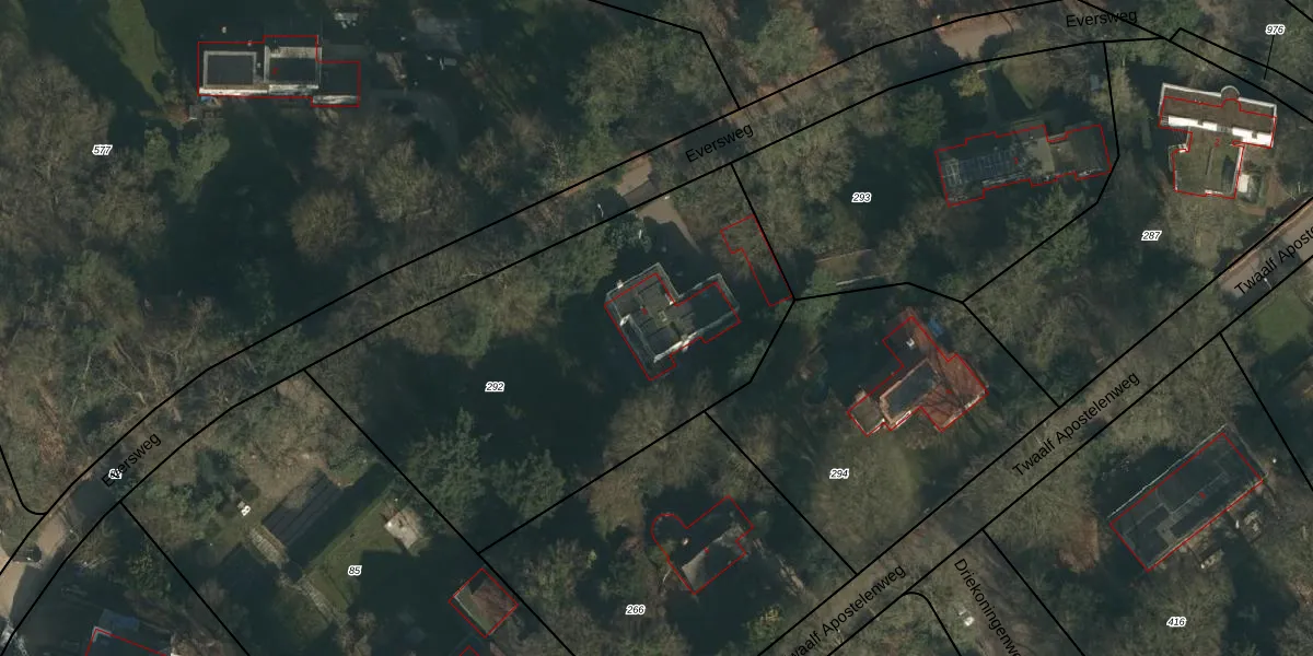 Het perceel waarop Eversweg 3 staat heeft een oppervlakte van 2210 m². Dit is een zeer groot perceel. De perceeloppervlakte wordt geregistreerd door het Kadaster. Gedetailleerde informatie over de maten van dit perceel kunt u vinden in het rapport Kadastrale kaart met maatvoering van Eversweg 3.
