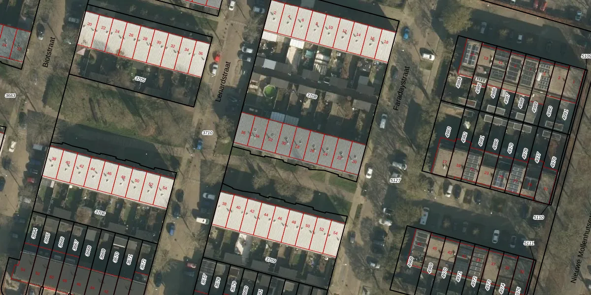 Het perceel waarop Faradaystraat 28 staat heeft een oppervlakte van 2445 m². Dit is een zeer groot perceel. De perceeloppervlakte wordt geregistreerd door het Kadaster. Gedetailleerde informatie over de maten van dit perceel kunt u vinden in het rapport Kadastrale kaart met maatvoering van Faradaystraat 28.