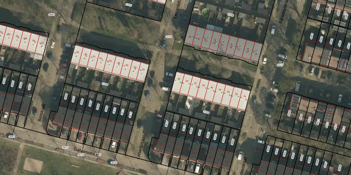 Faradaystraat 38 is gelegen op kadastraal perceel HTT02D3709. Deze kadastrale aanduiding is uniek en wordt gebruikt door het Kadaster om eigendomsrechten en andere zakelijke rechten vast te leggen. Het perceel maakt onderdeel uit van de kadastrale gemeente Hatert.