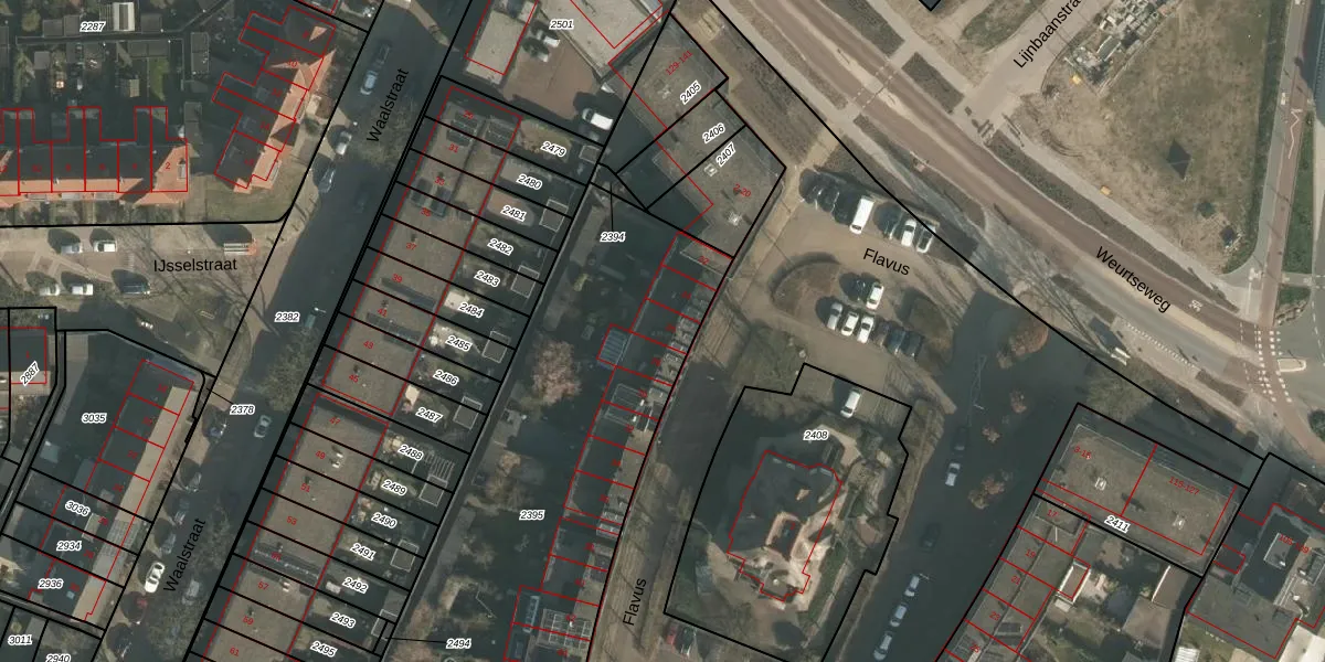 Het perceel waarop Flavus 26 staat heeft een oppervlakte van 2748 m². Dit is een zeer groot perceel. De perceeloppervlakte wordt geregistreerd door het Kadaster. Gedetailleerde informatie over de maten van dit perceel kunt u vinden in het rapport Kadastrale kaart met maatvoering van Flavus 26.