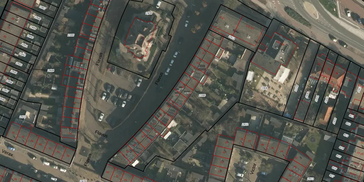 Het perceel waarop Flavus 29 staat heeft een oppervlakte van 2467 m². Dit is een zeer groot perceel. De perceeloppervlakte wordt geregistreerd door het Kadaster. Gedetailleerde informatie over de maten van dit perceel kunt u vinden in het rapport Kadastrale kaart met maatvoering van Flavus 29.