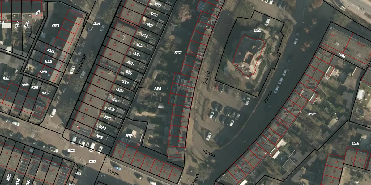 Flavus 44 is gelegen op kadastraal perceel NBH00A2395. Deze kadastrale aanduiding is uniek en wordt gebruikt door het Kadaster om eigendomsrechten en andere zakelijke rechten vast te leggen. Het perceel maakt onderdeel uit van de kadastrale gemeente Neerbosch.