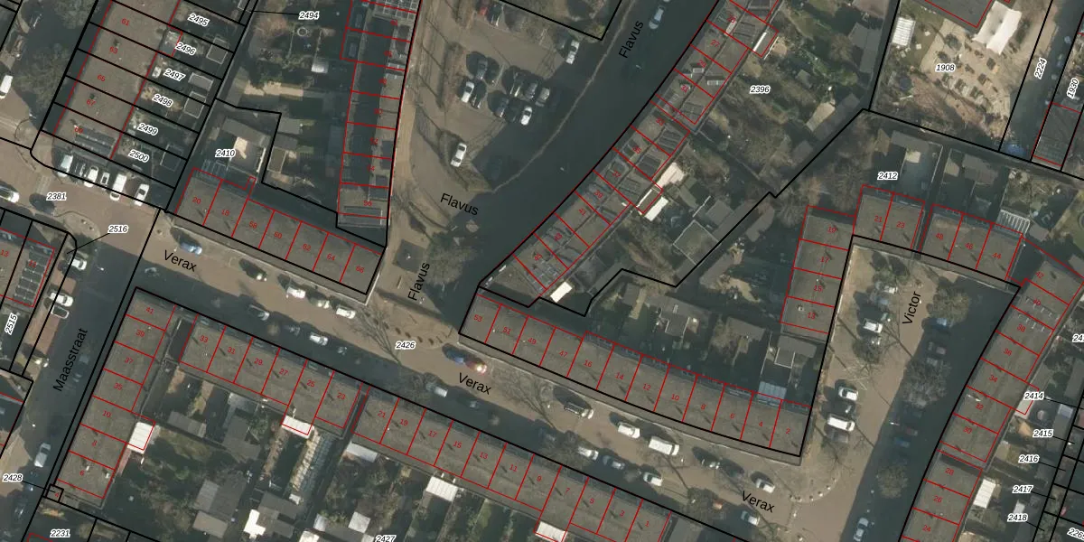 Flavus 45 is gelegen op kadastraal perceel NBH00A2396. Deze kadastrale aanduiding is uniek en wordt gebruikt door het Kadaster om eigendomsrechten en andere zakelijke rechten vast te leggen. Het perceel maakt onderdeel uit van de kadastrale gemeente Neerbosch.