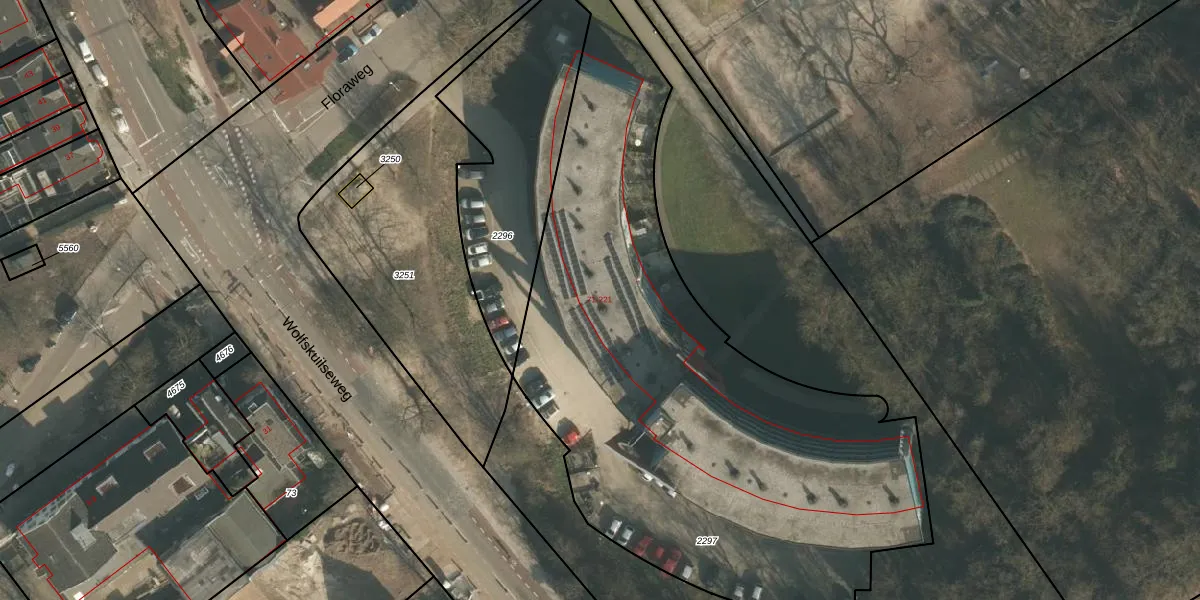 Het perceel waarop Floraweg 151 staat heeft een oppervlakte van 3220 m². Dit is een zeer groot perceel. De perceeloppervlakte wordt geregistreerd door het Kadaster. Gedetailleerde informatie over de maten van dit perceel kunt u vinden in het rapport Kadastrale kaart met maatvoering van Floraweg 151.