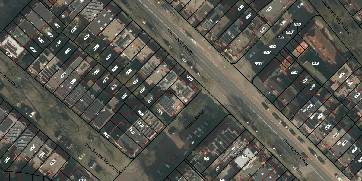 Fransestraat 2 is gelegen op kadastraal perceel NMG00B3162. Deze kadastrale aanduiding is uniek en wordt gebruikt door het Kadaster om eigendomsrechten en andere zakelijke rechten vast te leggen. Het perceel maakt onderdeel uit van de kadastrale gemeente Nijmegen.