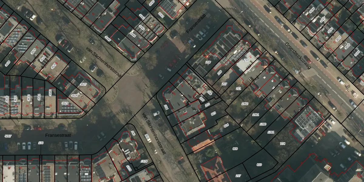 Het perceel waarop Fransestraat 9 staat heeft een oppervlakte van 141 m². Dit is een middelgroot perceel. De perceeloppervlakte wordt geregistreerd door het Kadaster. Gedetailleerde informatie over de maten van dit perceel kunt u vinden in het rapport Kadastrale kaart met maatvoering van Fransestraat 9.