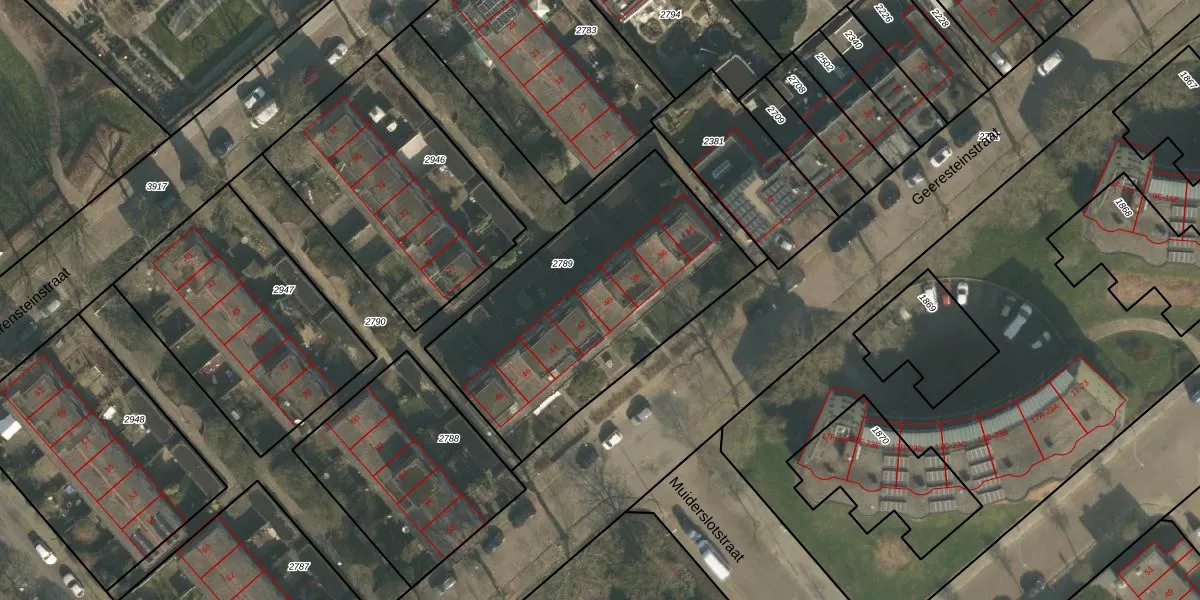 Het perceel waarop Geeresteinstraat 40 staat heeft een oppervlakte van 1279 m². Dit is een zeer groot perceel. De perceeloppervlakte wordt geregistreerd door het Kadaster. Gedetailleerde informatie over de maten van dit perceel kunt u vinden in het rapport Kadastrale kaart met maatvoering van Geeresteinstraat 40.