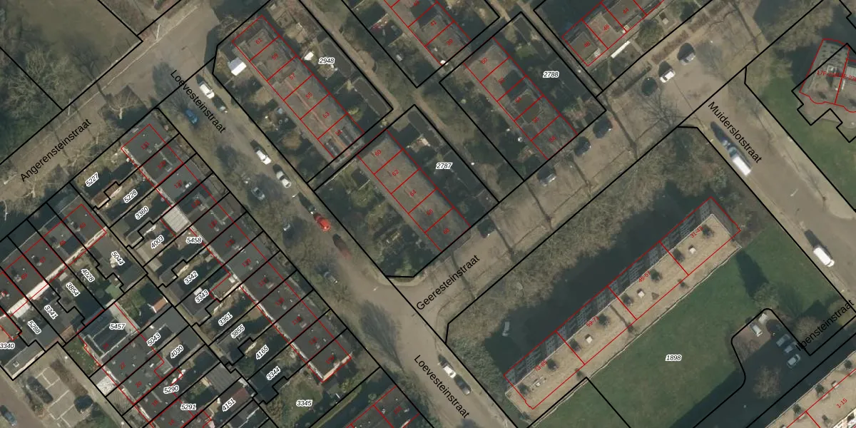 Het perceel waarop Geeresteinstraat 66 staat heeft een oppervlakte van 943 m². Dit is een groot perceel. De perceeloppervlakte wordt geregistreerd door het Kadaster. Gedetailleerde informatie over de maten van dit perceel kunt u vinden in het rapport Kadastrale kaart met maatvoering van Geeresteinstraat 66.